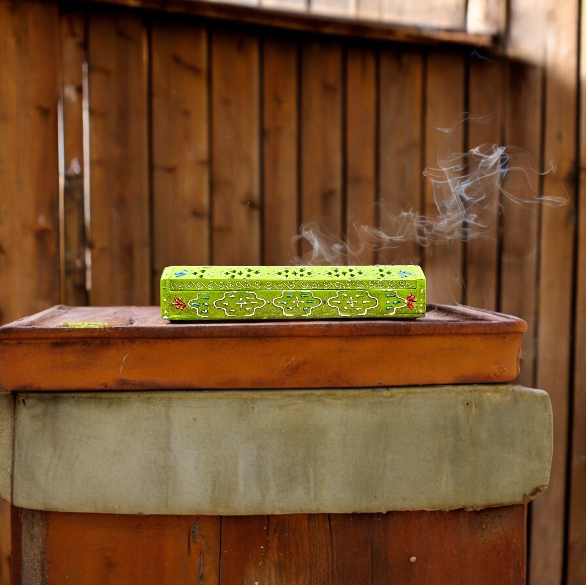 Add a splash of color with our Artisanal Hand Painted Incense Holder in vibrant red, green, and blue. Each piece is uniquely crafted to enhance your spiritual space.